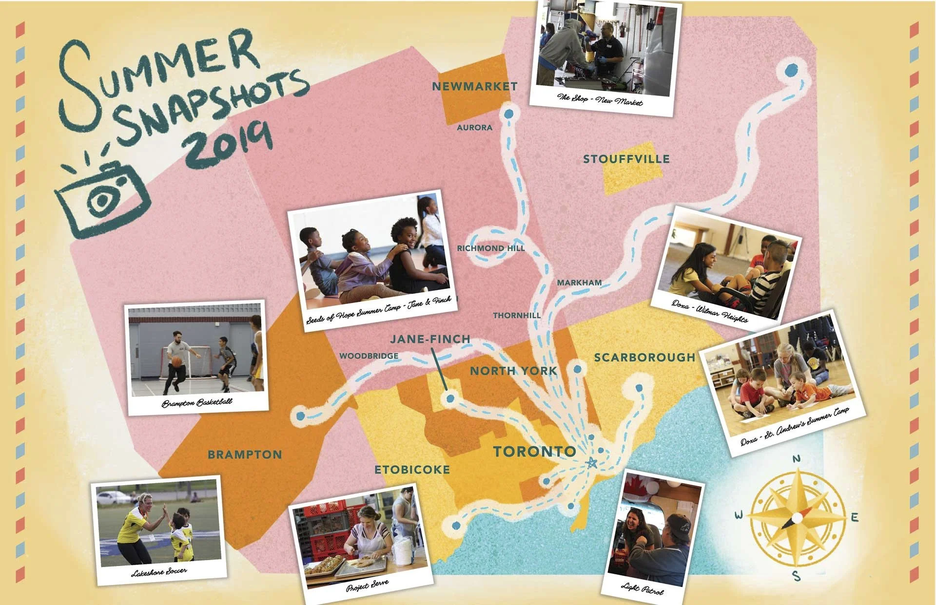 At Youth Unlimited (YU), I was gifted the opportunity to spend the summer months traveling across the Greater Toronto Area; meeting our teams, and learning about the communities and groups we serve. From kids camps and after school programs, to the homeless community and at-risk youth. Through this exploration I learned a lot about the diverse range of programs ran at YU, and it inspired me to create the “YU Travel Guide: Map of Our Ministries”. This guide served as one of YU’s annual publications, Summer Snapshots.